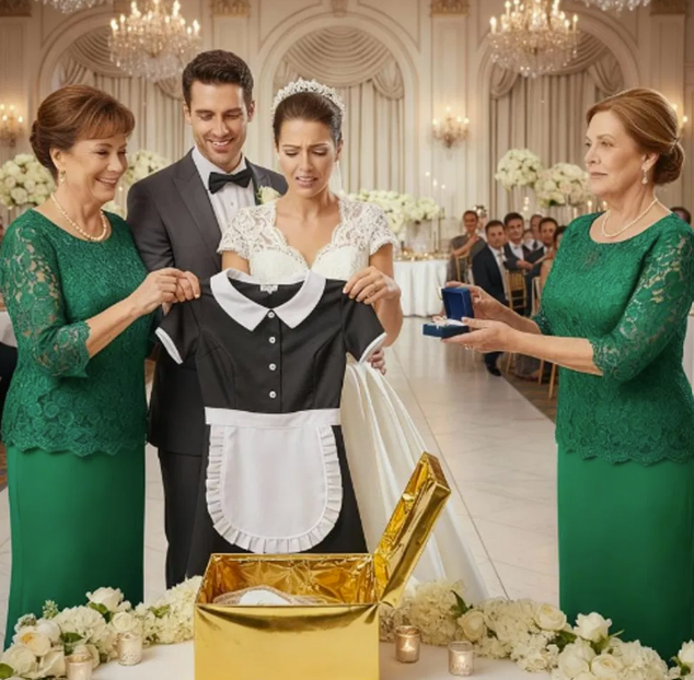 Au mariage de ma fille, sa belle-mère lui a offert un coffret cadeau. En l'ouvrant, ma fille y a trouvé un uniforme de femme de ménage. Mon gendre a souri et a fait remarquer : « C'est exactement ce qu'il lui faudra à la maison. » Les yeux de ma fille se sont remplis de larmes et elle s'est mise à trembler. Je me suis levée discrètement et lui ai dit : « Maintenant, montre-moi le cadeau que j'ai pour toi. » Quand ma fille a ouvert le coffret, son visage s'est illuminé d'un profond étonnement.