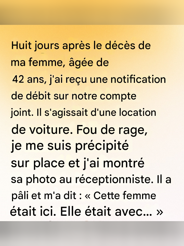 Mon cœur a fait un bond, comme si quelque chose l'avait saisi par-derrière. Comble de l'ironie, une location de voiture. Pas des courses. Pas une facture. Quelque chose de délibéré. Quelque chose d'actif.